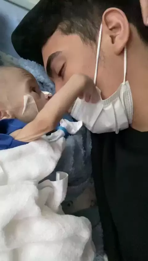 Ravizinho acariciando seu pai guerreiro que nunca desistiu e nem queria sair de perto do seu filho,foram noites e noites exaustiva e mesmo com tanto cansaço não queria sair de perto do filho, quiser conhecer um pouco da história do Ravizinho deixarei o Instagram @ravi_bernardo_sato