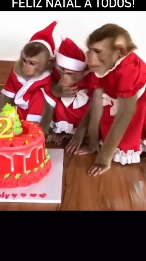Põe o gorro aí na cabeça de Maria Helena aí Nalva. Oh Dinha poe aí a música de Natal nega… #mundoanimal #Sóresenhas #kwai #monkey #AquiGeralBrilha
