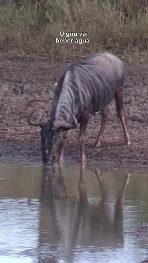 O gnu vai beber água.