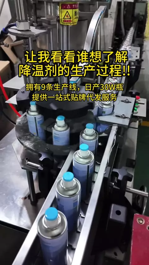 Actual picture of aerosol production line, production process of cooling agent #cooling spray #source factory #OEM label processing #customization #aerosol label气雾剂生产线实拍,降温剂