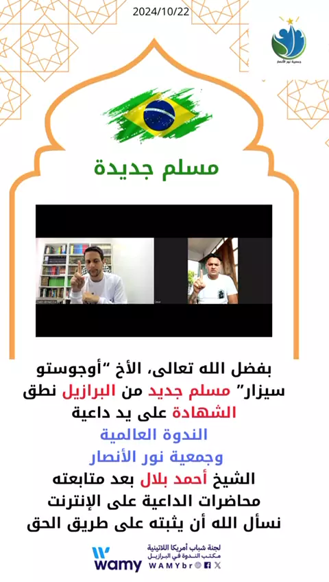 Shahadah (Reversão) do irmão Augusto César Allahu Akbar Allahu Akbar Allahu Akbar 22/10/2024 Sheikh Ahmad Bilal #shahada #muçulmanobrasil #pilaresdafé #pilaresdoislam #Shahadah