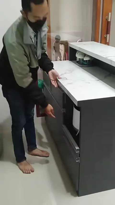 konsep dapur dan minibar minimalis dengan pemilihan warna abu tua kalem dan top tablet carara. Klien: Feranika . . .#dapurcantik#inspirasidapur#kitchensetbandung#kitchensetjakarta#kitchensetbekasi#dapurestetik#dapurminibar#idedapur