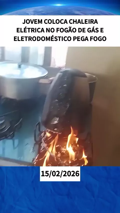 Jovem coloca chaleira elétrica no fogão de gás e eletrodoméstico pega fogo #noticias #BomPraKWAI #Informativo #ultimasnoticias
