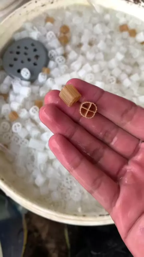 Salah satu filter biologis yang menggunakan media filter khusus yang disebut Kaldnes K1. Media ini memiliki permukaan yang besar untuk pertumbuhan bakteri baik, yang membantu dalam pemrosesan limbah organik dalam sistem filtrasi air lainnya. Dengan meningkatkan koloni bakteri, filter Kaldnes membantu menjaga kualitas air yang baik untuk hewan-hewan di dalamnya.#ikannila#budidayaikan#budidayaikannila#sistemras#urbanfishfarm#urbanfarming#aquaculture#urbanfarmingsemarang#perkotaan#landscape#tanimu...