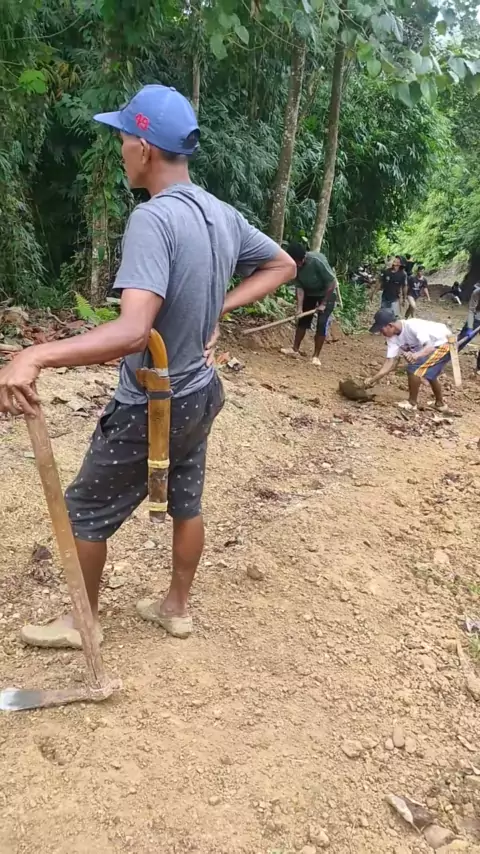 gotongroyong. sebelum panen kita perbaiki jalan dulu biar enak di lewati pas mengangkut hasil panen#anakpetani#petanibiasa#cengkeh#