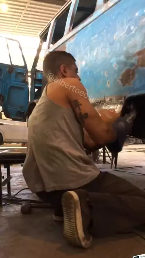 SOLDEI A LATERAL DA KOMBI CORUJINHA 64..... USEI A SOLDA MIG... #kombi #funilaria #restauracaodecarrosantigos