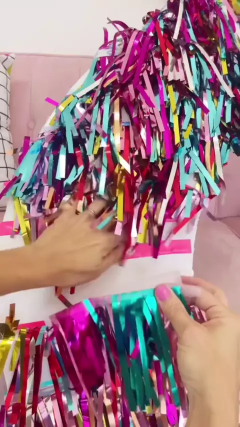 #Estou amando essa lua de franja de mylar DIY que fiz! É perfeito combinado com todos os morcegos pretos! Tutorial abaixo: Usei placas de código de espuma que cortei e colei em forma de lua crescente, depois peguei serpentinas de festa de mylar e as cortei em tiras de 6-8” e colei as peças juntas para criar peças de franja de mylar e depois as colei na lua do núcleo de espuma até que estivesse preenchida. #tendencia #viral #topkwai