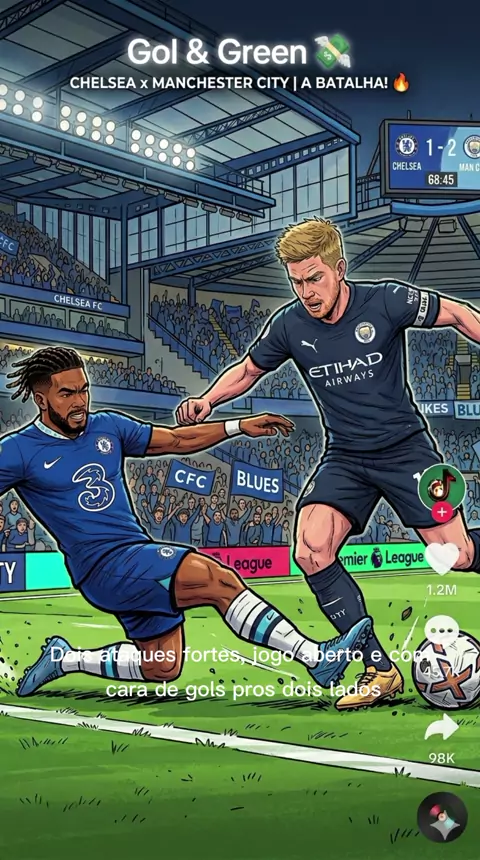 Jogo grande = gols dos dois lados 🔥⚽ Essa é forte! #HASHTAGS: #chelsea #mancity #apostas #futebol