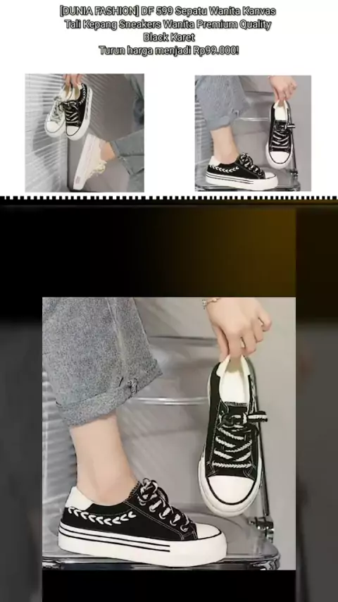[DUNIA FASHION] DF 599 Sepatu Wanita Kanvas Tali Kepang Sneakers Wanita Premium Quality Black Karet Turun harga menjadi Rp99.000! # # #sepatu