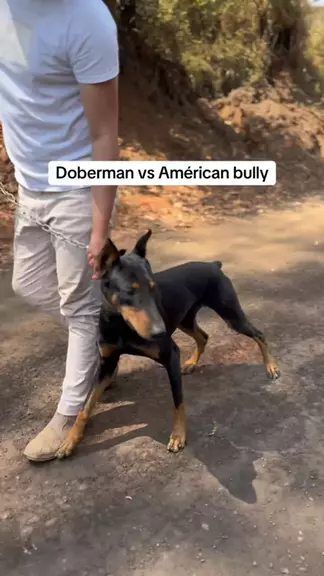 Quem ganharia essa luta? #doberman #americanbully #bordercollie