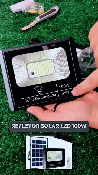 Refletor Solar LED 100W - Holofote 6500K Controle Remoto.