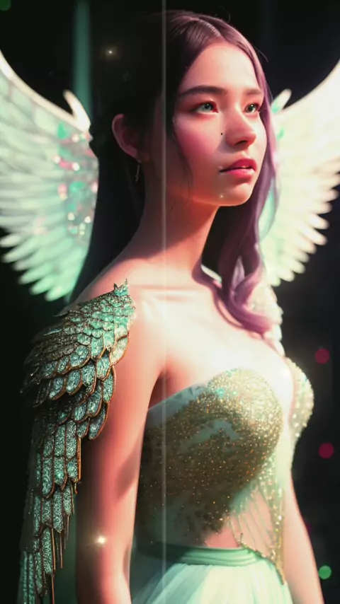 a close up view of gossimer crystal see through wings wrapped around a young woman with her arms around her knees, tears falling down her cheeks at the foreground with a dystopian background #Wallpaper #Art #artwork #photograph #ai