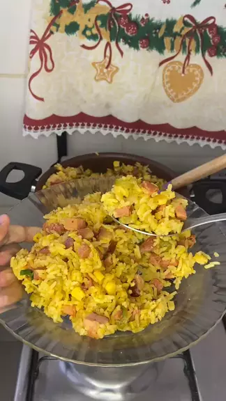 Arroz de calabresa temperado馃構 Ingredientes 馃憞 150 gramas de bacon 1 calabresa picada 4 alhos picados Cebola picada Milho e ervilhas Azeitonas 2 x铆caras de arroz Temperos馃敾 Sal, chimichurri, curry , coentro em p贸 , salsa em p贸 , corante 2 x铆caras de 谩gua #KwaiChef2025 #Receita #fyp #fyyy #foryoupage