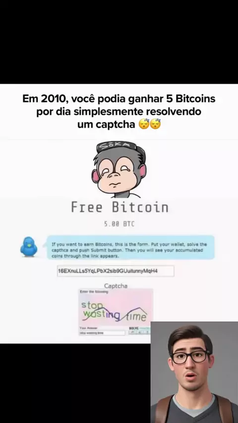 Já pensou clicar em um captcha e ganhar 5 Bitcoins de graça? Em 2010 isso valia centavos. Hoje, mais de meio milhão de dólares. 😳⚡ #BitcoinDeGraça #ESeEuTivesseGuardado #cripto