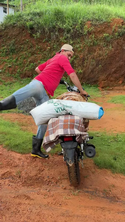 Puxando adubo na moto