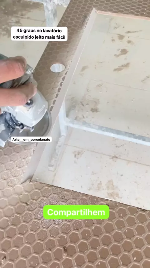 45 graus no lavatório esculpido compartilhem 🤩 #kwai #acabamento #porcelanato #dicas #Azulejista