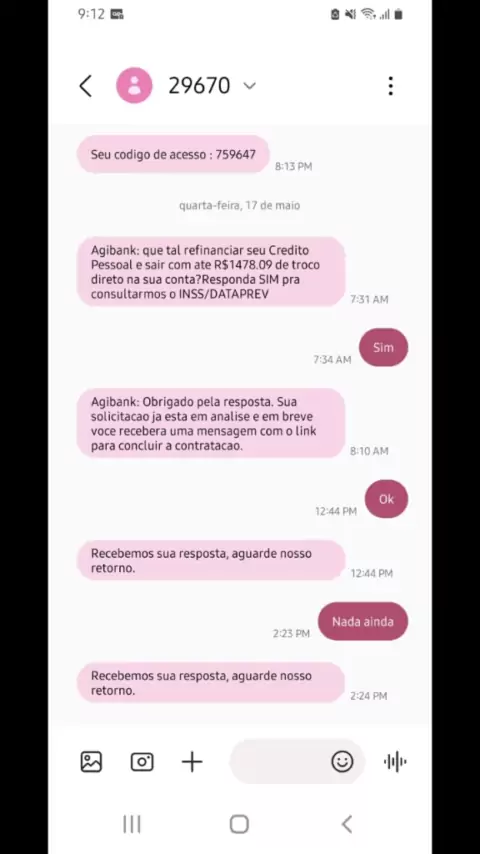 PESSOAL DE TODO BRASIL VENHO ALERTA PARA TODOS QUE RECEBEM SALARIO OU APOSENTADO E BPC ETC...NÃO ENTRE CONTATO DE EMPRESTIMO COM ESTE BANCO PORQUE ELES ENGANA OS CLIENTES...PORQUE EU ACABEI DE ENTRAR NESTE PROBLEMA...ENTAO ESTA AI PRA QUEM TEM SALÁRIO FICA DE ALERTA ....EU NEM SEI MAIS OQUE EU FAÇO COM ESTE BANCO AGIBANK