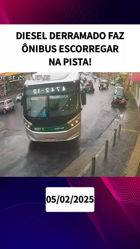 Diesel derramado faz ônibus escorregar na pista! #BomPraKWAI #Notícia #ultimasnoticias