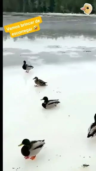 Brincadeira dos patos no gelo🤭🤭 #escorregabunda #patosnogelo #animaislivres
