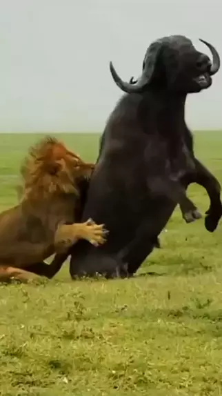 leão derruba búfalo no pulo #BUFALO #Leão #animais #selvagem #mundoselvagem