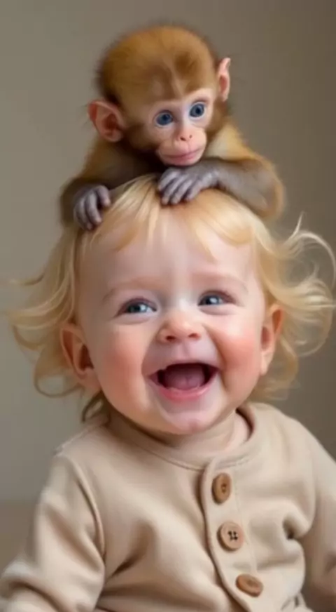 Monkey on baby's head 😂🤣🐒🐵👶🥰 Macaco na cabeça do bebê. #monkey #baby #bebê #macaco #funny