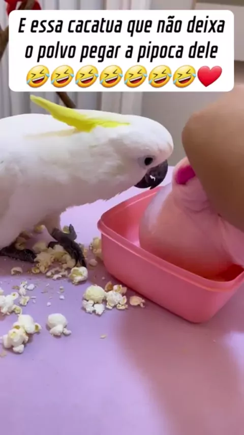e essa cacatua que não deixa o polvo comer a pipoca dele🤣🤣🤣🤣❤ #kawaipets #LiberadaANoiteToda #viral #fy #segundaeucomeço