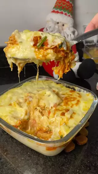 Escondidinho de mandioca cremosa com frango desfiado