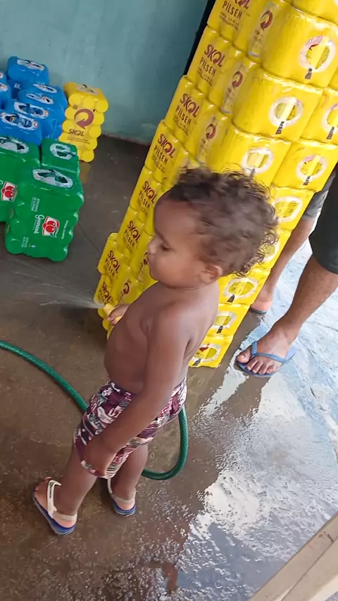 ajudando o papai #Cantakwai #ajudando #água #mangueira #cerveja
