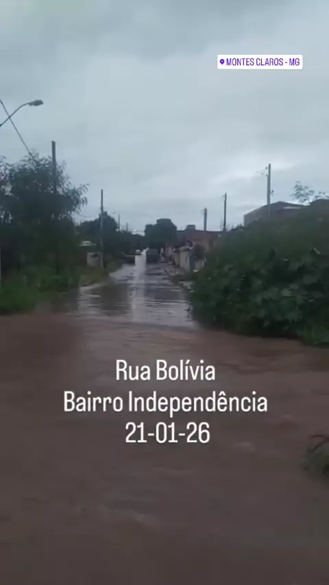 Chuva forte transforma rua Bolívia em “rio” e cria situação de risco em Montes Claros (MG) Montes Claros, Norte de Minas Gerais — 21 de janeiro de 2026 Uma forte chuva que atingiu Montes Claros nesta quarta-feira provocou alagamentos intensos em vários pontos da cidade, com destaque para a Rua Bolívia, que ficou completamente tomada pela água, em alguns trechos comparável a um verdadeiro rio urbano. Moradores e motoristas relataram que a enxurrada se movimentava com grande força, tornando peri