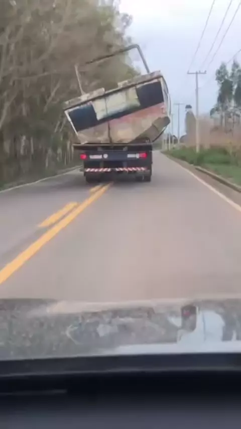 #trasporte inregular na rodovia em.pinheiros :uma carreta carregando uma lancha ocupa o meio da pista colocando em risco todos que trafegam fundamental respeita as normas de trânsito 🚦
