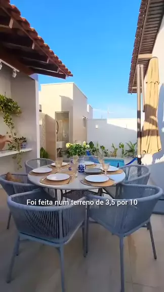 Área de lazer projetada em um terreno de 3,5 x 10. Possui piscina, chuveirão, banheiro, pergolado com rede e área de churrasqueira. O que vocês acharam? 🤩🤍 Por: @essencia_arquitetura •───────────────────────• #arq_designer #arqdesigner #grupoarqdesigner