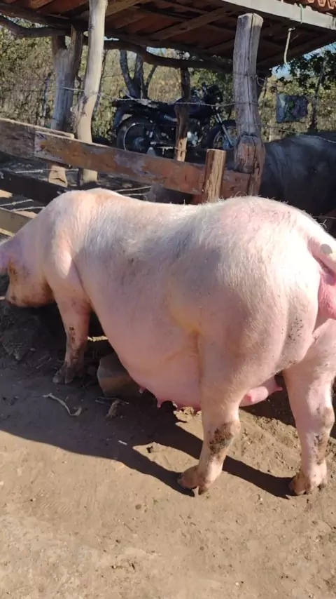 nossa matriz PIETRAN COM LANDRACE derradeira semana de sua primeira gestação . Quantos leitões?🤠 #suínos #reprodução #pietran #landrace #leitões