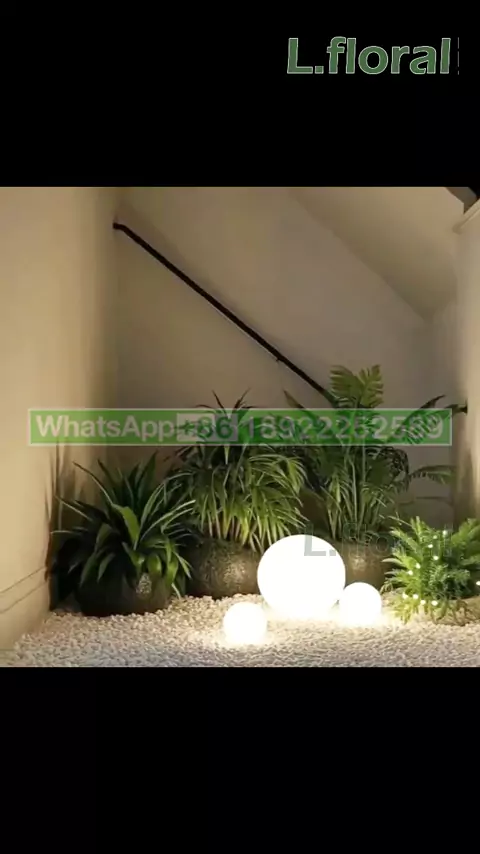 Green plants for landscaping, simulated grass, moss grass, stones, artificial trees,