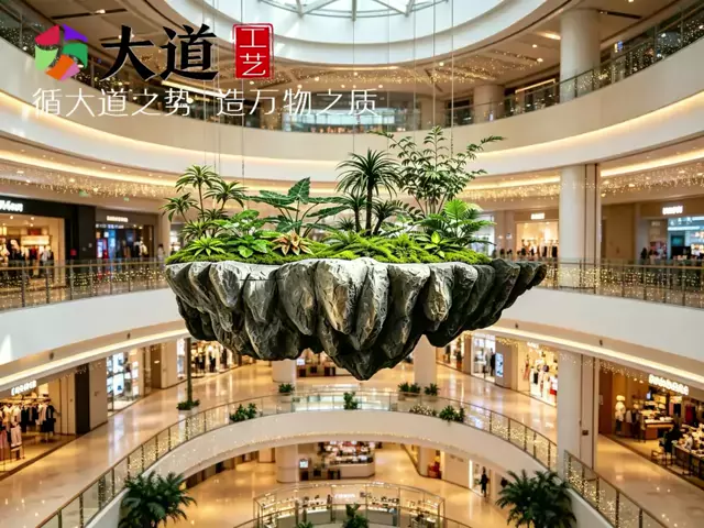 Suspended stones, suspended mountain stones, floating islands, art installations, green plants, ferns, hanging vines, aerial forests, fantasy forests, suspended islands, cloud gardens, shopping mall atrium scenes, festive decorations, art props, film and television props #suspendedstone #suspendedmountainstone #skyisland #artisti decoration #artistic display prop