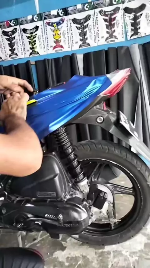 wrapping Honda Beat Biru satin##sticker#medanviral#onewayvisionprint#KelayaBubblePop゚viral#modified#decalmedan#skotletmotor#wrappingtutorial#skotlet#samstikermedan#videobranding#medanpunya#wrappingmotor