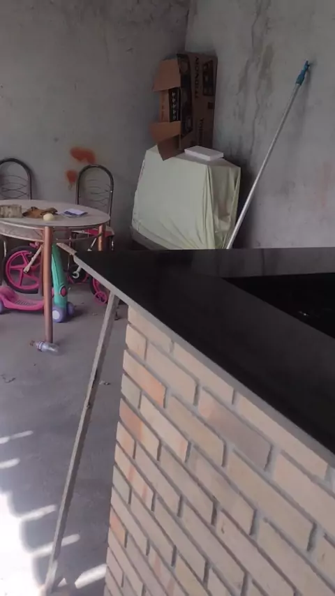 serviço concluído churrasqueira com fogão a lenha e bancadas em granito preto...