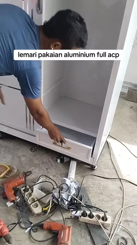 lemari pakaian pintu geser bahan aluminium dan acp