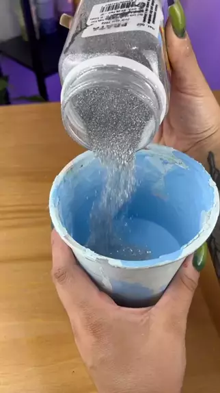 Coloquei glitter na tinta azul #kwai #decor #DIY #arte