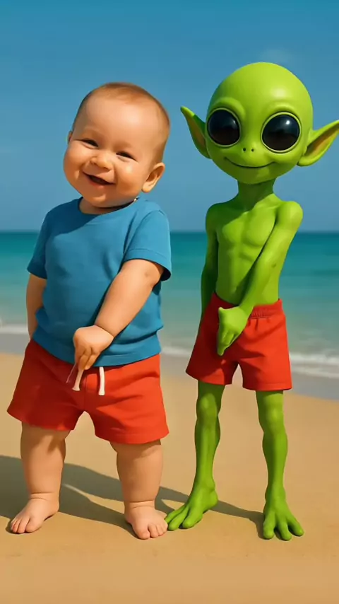CUTE BABY DANCING WITH DAME TU COSITA ON THE BEACH❤️👶👽 #baby #kidsoftiktok #babydance #funnybaby #funnydance