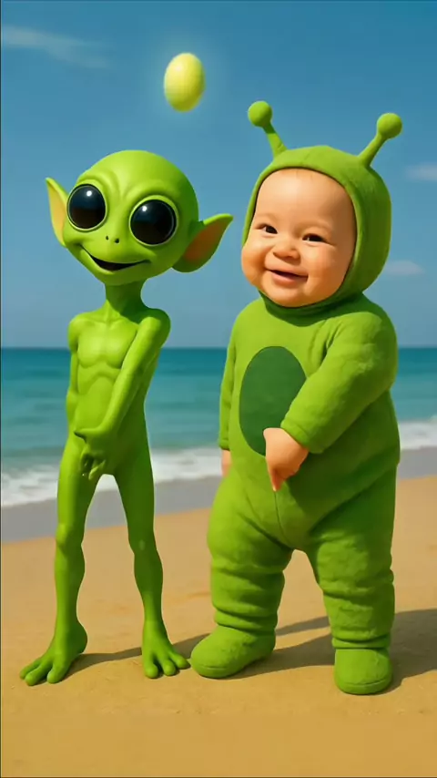 Cute baby dancing with Dame Tu Cosita on the beach 👽❤️🏖️ #baby #kidsoftiktok #babydance #funnydance #funnybaby