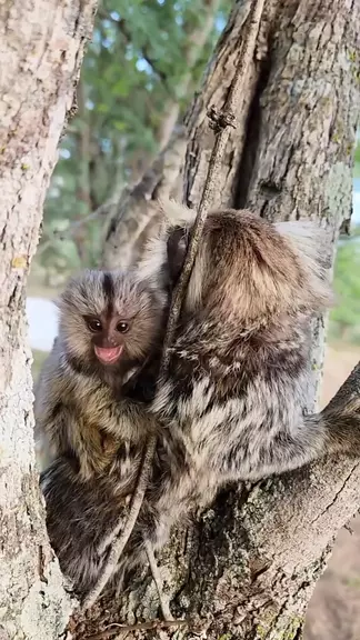 Sagui mordendo filhote para tirar das costas.