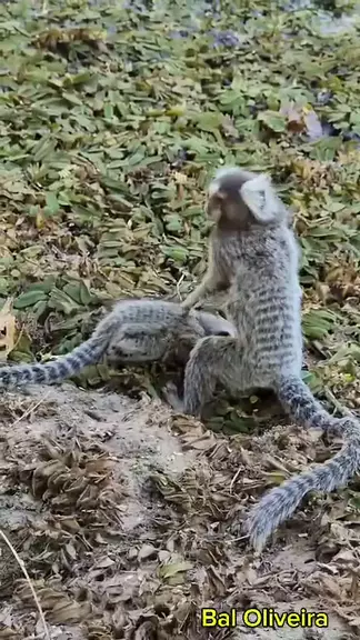 O filhote de sagui foi beber água com o pai na forte.
