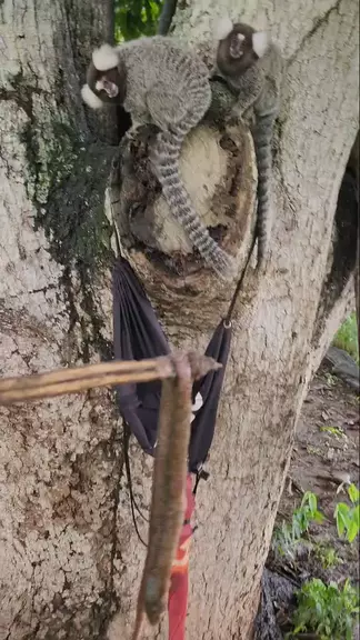 Os macacos saguis com medo da cobra.