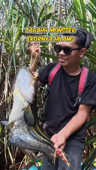 Dapat ikan tapah monster tapi ekornya udah dimakan predator😭 #food #ikan #bolang