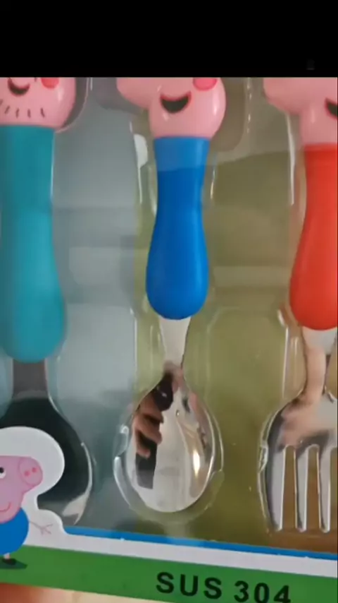 4Pcs Talheres Peppa Pig Cutelaria 304 Colheres De Garfos De Aço Inoxidável George Mom and Dad Cartoo. #criança