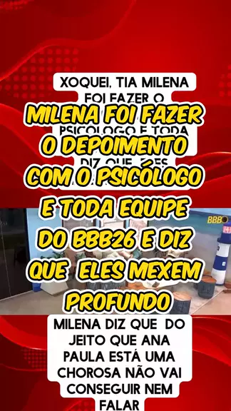 milena foi fazer o depoimento com o psicólogo e toda equipe do bbb26 e diz que eles mexem profundo #bomprakawai #OLadoBdoBBB #ACasaMaisVigiada #viraliza #entretenimento