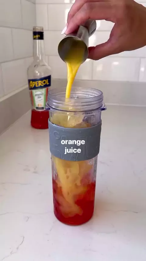 se você ama aperol Spitz, põe que não experimentar isso? é tão gostoso e refrescante, além super fácil de fazer! ingredientes.( 1 grande) gelo eu usei 2 doses duplas de aperol 2 doses duplas de proseco 1 doses duplas de suco de laranja 1 doses duplas de soda bata tudo no liquidificador e sirva com uma fatia de laranja.