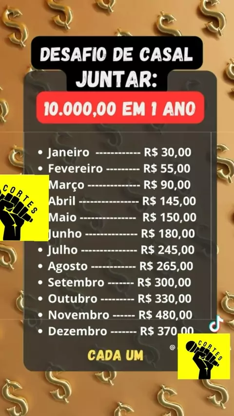 Como juntar dez mil reais em 1 ano, desafio para casal #rico #desafios #dinheiro #maisviews