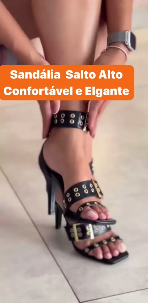 Sandália Feminina Salto Alto Fino Fivela Ilhós Spike Confortável