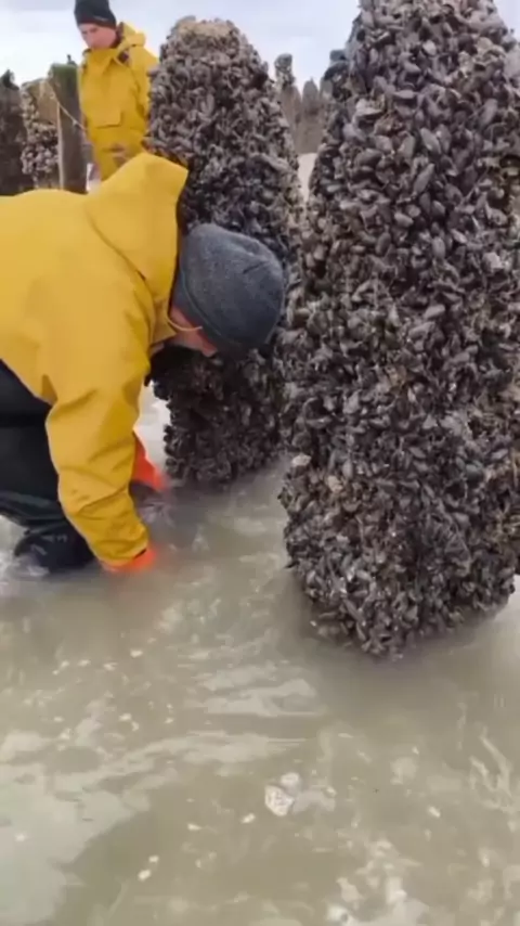 pegando mexilhões no mar